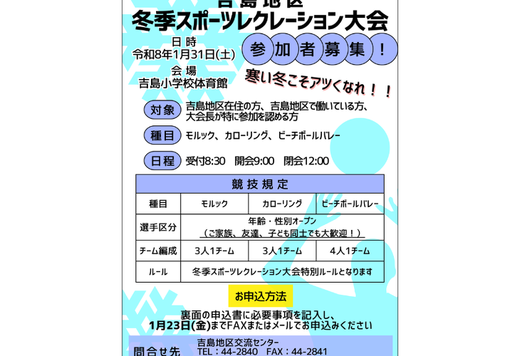 『吉島地区冬季スポーツレクレーション大会』を開催します!